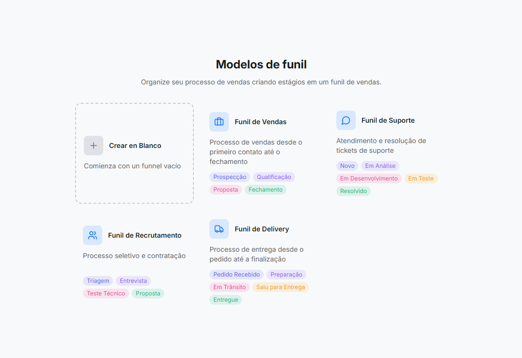 A funcionalidade permite a criação de quadros personalizados, onde as tarefas são distribuídas em colunas que representam cada etapa do fluxo de trabalho, como: